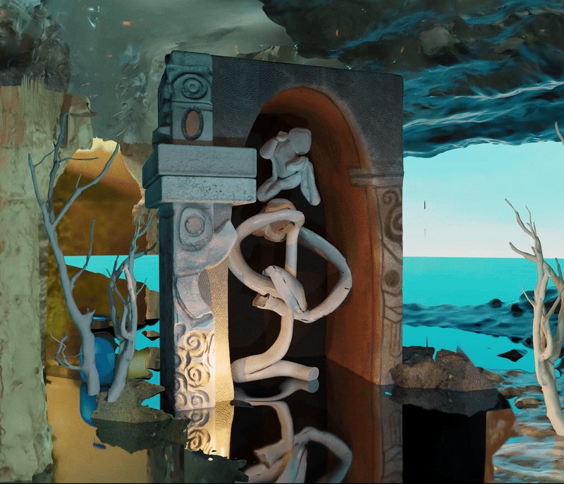Inhabiting the Threshold, 2'19 loop, 15360 x 2400 px, Computer generated video and mix media, 2024